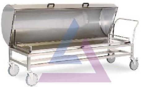 - Cadaver trolley is designed for easy movement and work in conjunction with morgue unit